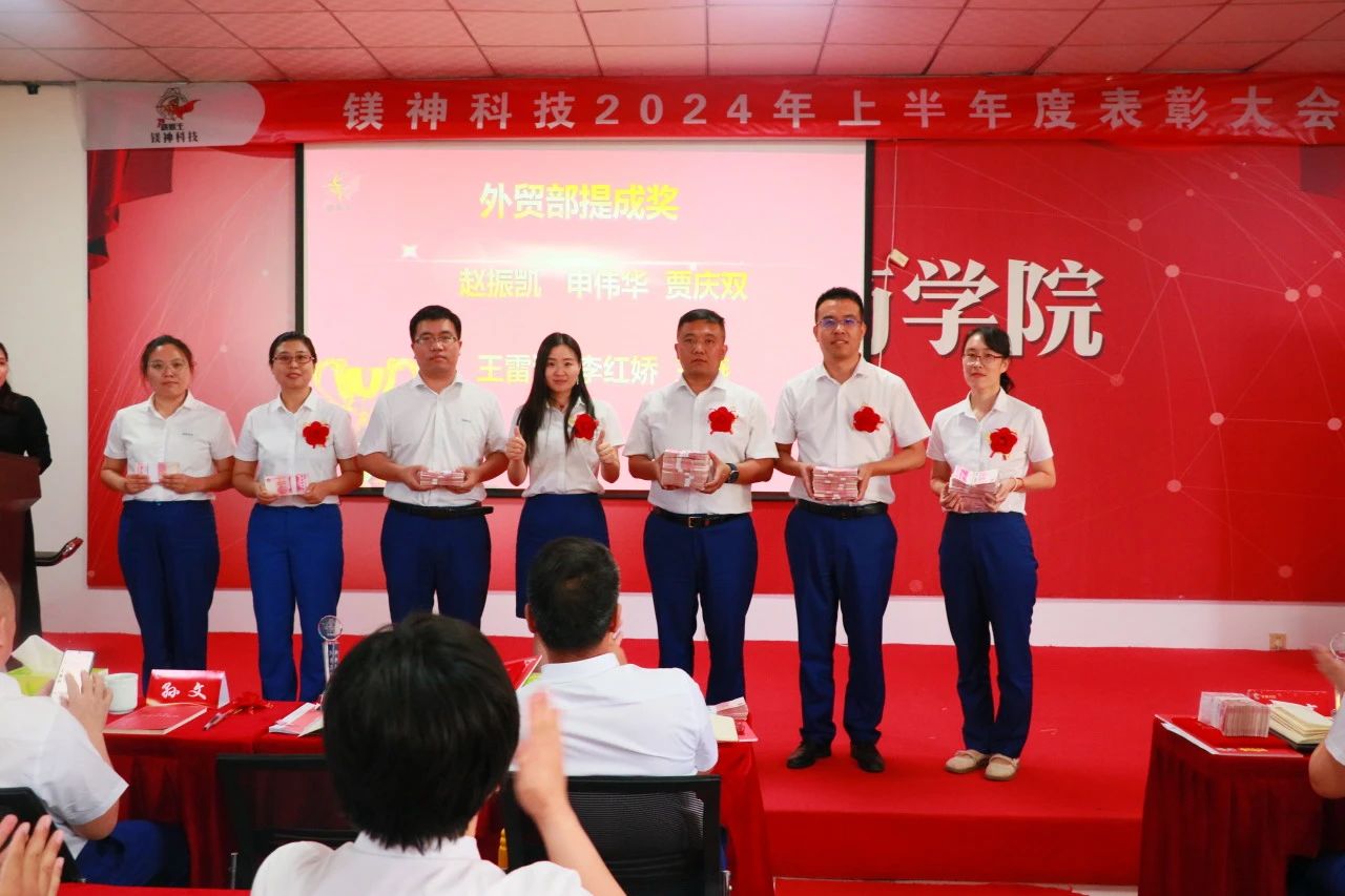 新聞?wù)?2024年9月18日,在這碩果累累的季節(jié),河北鎂神科技股份有限公司舉辦了一場(chǎng)隆重的半年度表彰大會(huì)。本次大會(huì)不僅總結(jié)了公司上半年度的輝煌成就,還對(duì)表現(xiàn)突出的員工和團(tuán)隊(duì)進(jìn)行了慷慨的獎(jiǎng)勵(lì)。此次表彰大會(huì)的獎(jiǎng)金總額高達(dá)175.98萬(wàn)元,其中包括:優(yōu)秀表彰共44.9萬(wàn)元,鎂神英雄獎(jiǎng)1萬(wàn)元,優(yōu)秀團(tuán)隊(duì)及特殊貢獻(xiàn)獎(jiǎng)共計(jì)83萬(wàn)元,2023年外貿(mào)提成及市場(chǎng)獎(jiǎng)勵(lì)47.08萬(wàn)元。這些豐厚的獎(jiǎng)勵(lì)不僅是對(duì)優(yōu)秀員工的肯定,更是對(duì)未來(lái)拼搏的激勵(lì)。