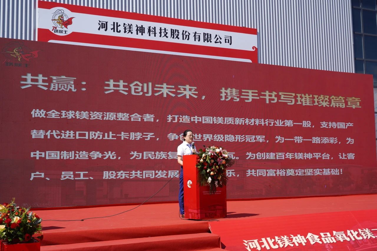 孫文董事在致辭中回顧了鎂神科技21年的發(fā)展歷程,從一家專注氧化鎂產(chǎn)品的制造企業(yè),逐步發(fā)展為擁有6家全資子公司、年產(chǎn)能達(dá)10萬噸的高新技術(shù)企業(yè)。此次食品氧化鎂二期項目的啟動,是公司推動鎂鹽行業(yè)技術(shù)創(chuàng)新、拓展市場的重要舉措。孫文董事長特別提到,本次二期項目的投產(chǎn)后,食品級氧化鎂的年產(chǎn)能將達(dá)到1.5萬噸。這一新項目的投產(chǎn)不僅有助于鎂神科技進(jìn)一步鞏固其在國內(nèi)市場的領(lǐng)先地位,還將推動公司進(jìn)軍國際食品市場,為全球食品安全作出更大貢獻(xiàn)。