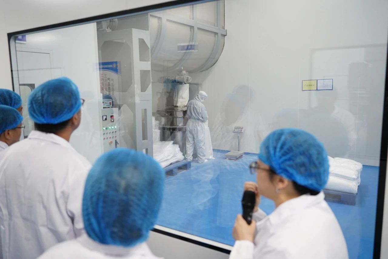 探訪現(xiàn)代化工廠,見證創(chuàng)新與實力在開工儀式結(jié)束后,孫文董事長邀請與會嘉賓們參觀鎂神科技的現(xiàn)代化生產(chǎn)基地,鎂王事業(yè)部總經(jīng)理畢立亨對食品氧化鎂二期項目的生產(chǎn)流程與技術(shù)創(chuàng)新進(jìn)行講解。參觀路線依次涵蓋了食品二期生產(chǎn)線、潔凈區(qū)、食品倉庫立體成品庫、研發(fā)中心以及公司展廳。