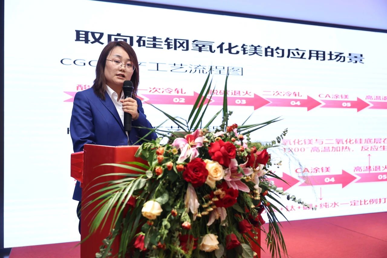 在鎂神科技研發(fā)總監(jiān)白雪梅女士的致辭中,她對鎂神科技多年來在氧化鎂領域的技術積累和創(chuàng)新成就做出進一步回顧,特別是對HIB鋼專用氧化鎂項目做了詳細介紹。她強調(diào),鎂神科技在全球率先建成了雙層六列電加熱輥道窯生產(chǎn)線,通過先進的自動化生產(chǎn)和嚴格的質(zhì)量控制體系,確保產(chǎn)品的高純度和穩(wěn)定性。白總監(jiān)還指出,鎂神科技將繼續(xù)致力于技術創(chuàng)新和產(chǎn)品優(yōu)化,以客戶需求為導向,提供更優(yōu)質(zhì)的定制化解決方案,助推取向硅鋼產(chǎn)業(yè)高質(zhì)量發(fā)展!